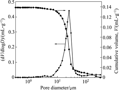 Fig. 1 Pore size distribution of porous SiC ceramic used for high temperature filtration supporter[10]