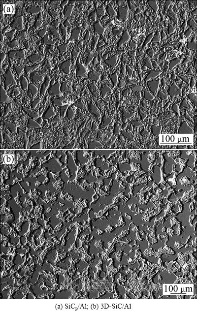 Fig. 10 SEM images of SiCp/Al and 3D-SiC/Al composites[58]