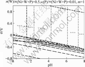 Fig.1 φ-pH diagram of Ni-W-P-H2O system at 298.15 K