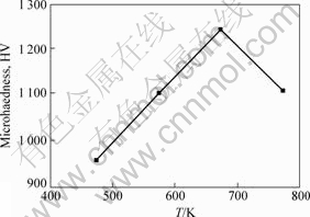 Fig.3 Influence of heat treatment temperature on hardness of composite coatings