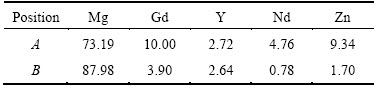 Due to low density, high specific stiffness and good damping capacity, magnesium alloys are more promising materials for automobiles, aircrafts, 3C products and biological fields [1-6]. According to the binary phase diagrams, the equilibrium solid solubility of Gd in Mg matrix is 23.5% (mass fraction) at eutectic temperature and declines sharply to 3.82% at 200 °C [7], so, Mg-Gd-based alloys exhibit significant solid solution strengthening and precipitation hardening. The solubility of Y in Mg matrix changes from 12.5% at the eutectic temperature to 3.4% at 225 °C, and the relative atomic mass of Y is much less than that of Gd. Adding the same amount of Y can produce higher solution strengthening in α-Mg matrix than adding the same amount of Gd. Also, the addition of Y in Mg matrix can substitute for part of Gd [8-10], so, Mg-Gd-Y system alloys exhibit superior mechanical properties, high specific strength and creep resistance.