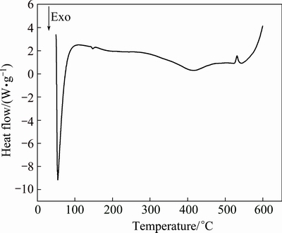 Figure 4 presents the DSC curve of as-cast alloy during heating. The first peak corresponds to the melting of the eutectic phases which have lower melting point, and the melting point is evaluated to be approximately 529.3 °C. Reference to the DSC curve and the experience formula Te=(0.9-0.95)Tm (Tm is the melt point of the alloy and selected as 650 °C), the selected temperatures are 505, 520 and 535 °C.