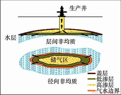 (1) 受复杂沉积环境影响,气库存在储层发育非均质性,低渗区在强的气、水毛管力作用下,气驱水阻力较大,水淹区难以形成有效驱替。同时低渗区由于注采井网布置的缺失,注气驱替压差相对较小,导致气体波及效果变差。