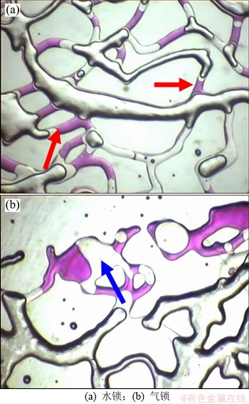 (2) 由于气、水流度比的显著差异,导致气体在强的驱替压差作用下,沿压力梯度最大方向,超越水而发生向水域气窜,从而形成新的水锁区和现有井网无法控制区域。