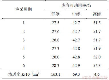 (3) 气体在孔喉中的高速流动,也将产生携液、干燥和去湿作用,加之亲水岩石的较强润湿性作用,在多次注采循环过后,库内气驱波及效率逐渐提高,但提高幅度非常缓慢。