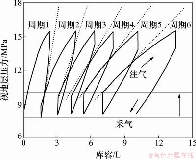Fig.8 Dynamic prediction of flooded gas storage during injection-withdrawal cycles