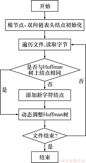 压缩和解压缩均对原始数据进行1次扫描,且二叉树的初始化都使用同一首字符来实现,再动态地对第n个字符进行压缩或解压缩。每压缩或解压1个字符时,二叉树都随之发生变化,与静态哈夫曼算法相比,不需要对哈夫曼的编码对照表进行保存,省去了保存哈夫曼码表的步骤。