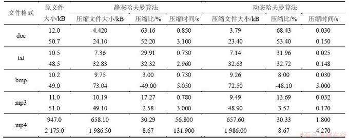 Table 1 Results of static Huffman algorithm and dynamic Huffman algorithm of serial compression