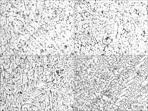 Fig.3 Optical microstructures of as-cast alloy: (a) Alloy 1; (b) Alloy 2; (c) Alloy 3; (d) Alloy 4