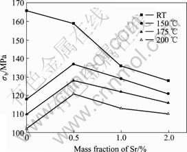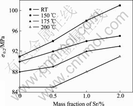 Fig.7 Effect of Sr content and temperature on σ0.2 of magnesium alloy