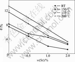 Fig.8 Effect of Sr content and temperature on elongation of magnesium alloy