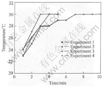 Kinetic energy produced by the fiction and collision among particles changes to heat energy when coating is carried out. Fig.1 shows the changes of temperature along with treatment time. In experiment 1 and experiment 2, the temperature increases quickly in the first 4min and keeps almost unchanged subsequently. It shows the same trend in experiment 3. In experiment 4, the time of change is shortened to just 2min. We can conclude from these results that the main coating process occurs in the first few minutes and too long treatment time is meaningless. Furthermore time is relevant to the mass of materials and rarely affected by the rotation speed.