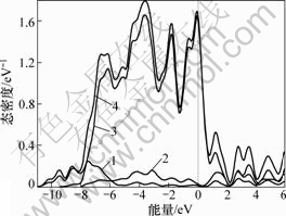 根据肖慎修等的观点[17],在费米能级两边有2个较大的峰,表明其具有较大的态密度,这是优良催化剂的典型特征。从图2可以看出,金属Pt在费米能级两边也有较大的峰,表明其态密度较大,因此,金属Pt的性能较好,在质子交换膜燃料电池实验中证实其催化效果比较好,表明金属Pt是一种优良的电催 化剂。