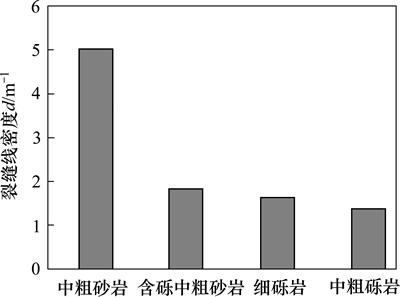 图7 盐家沙四段砂砾岩不同岩石类型中裂缝线密度