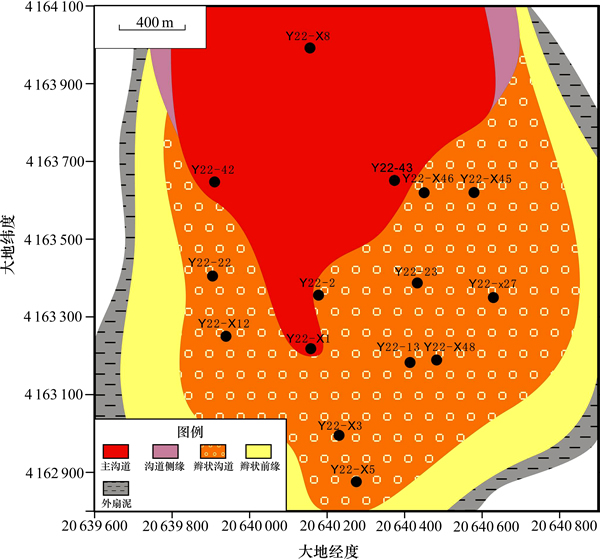 Fig. 10 Sedimentary facies map of Y22-22 nearshore subaqueous fan