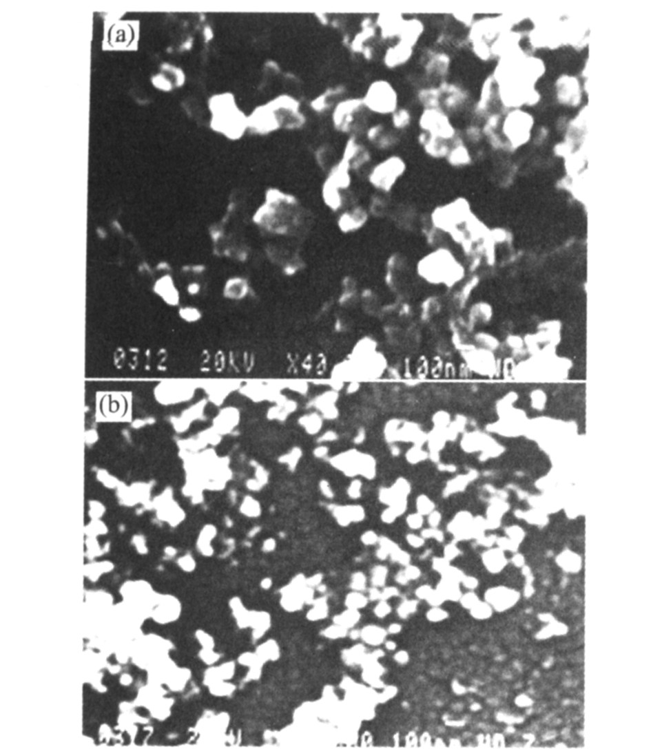 综上所述, 超声辐射既可因空化作用而促使颗粒细化、 分散, 也可因声场及反应介质体系中各种力的作用使颗粒团聚, 因此,必须选择适当的声学参数, 控制好反应介质体系的物理化学性质, 这有待于以后进一步深入探讨。