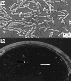 The microscopic examination of strain GF isolated from solid medium showed that they were single or in pairs long rod shape cells. Using SEM the cellular dimensions were determined to be (0.4±0.1) μm×(3.5±0.2) μm (shown in Fig.2), which was much larger than that reported before[14].