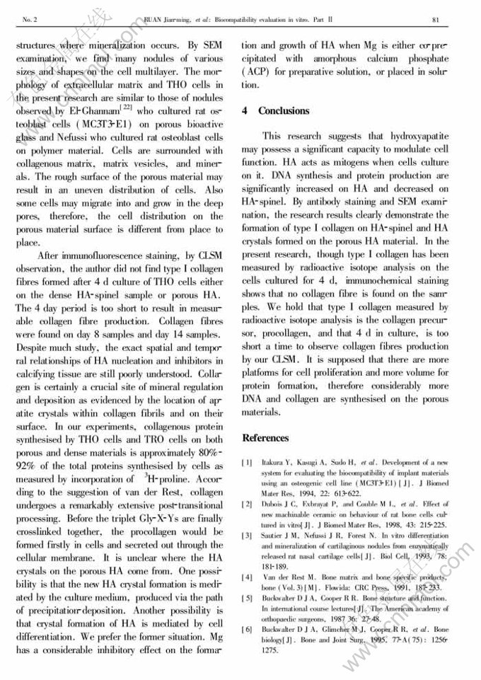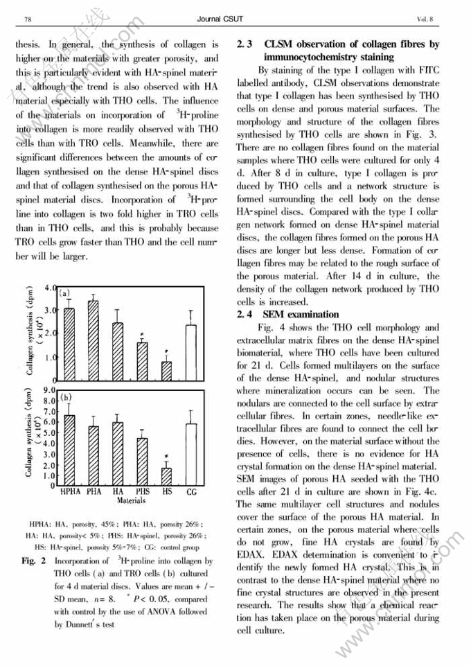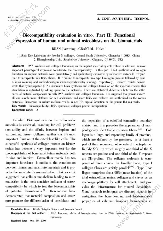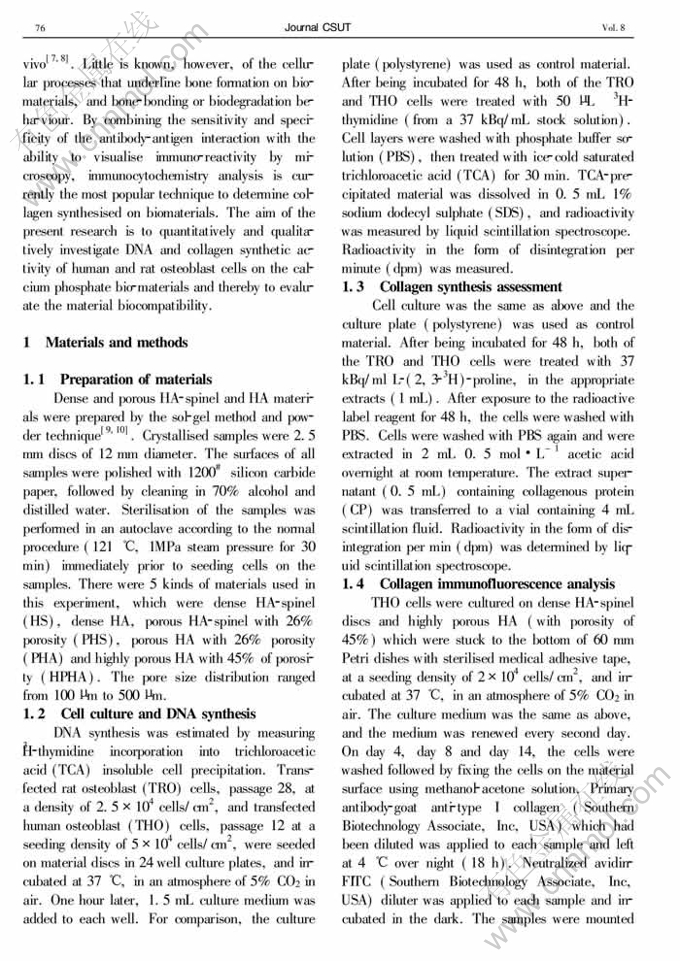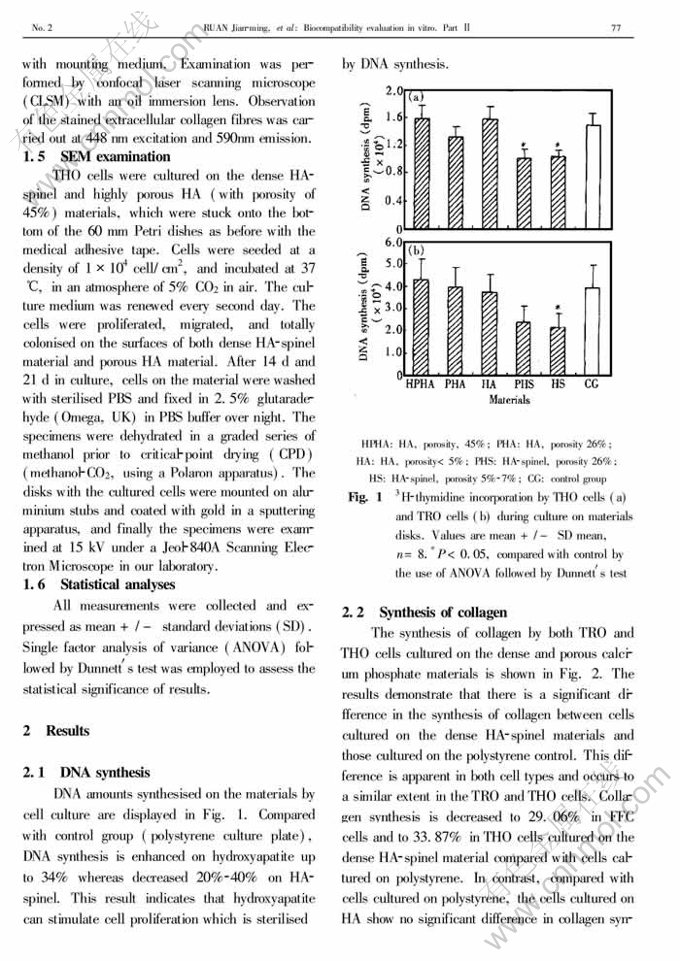 Key words:biocompatibility; DNA synthesis; collagen protein incorporation