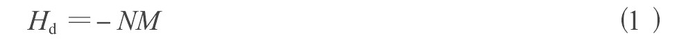 处在外加磁场Ha 中的磁性材料在其表面上会出现磁极,表面磁极使磁体内部存在与M方向相反的一种磁场Hd ,起着减退磁化作用,称为退磁场。退磁场的大小与磁体的形状及磁化强度有关,即