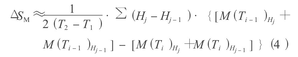 (4)式表示可以简单的由计算在温度为Ti-1 和Ti 时两条M-H曲线的面积,来近似求出磁熵变化值ΔSM 。