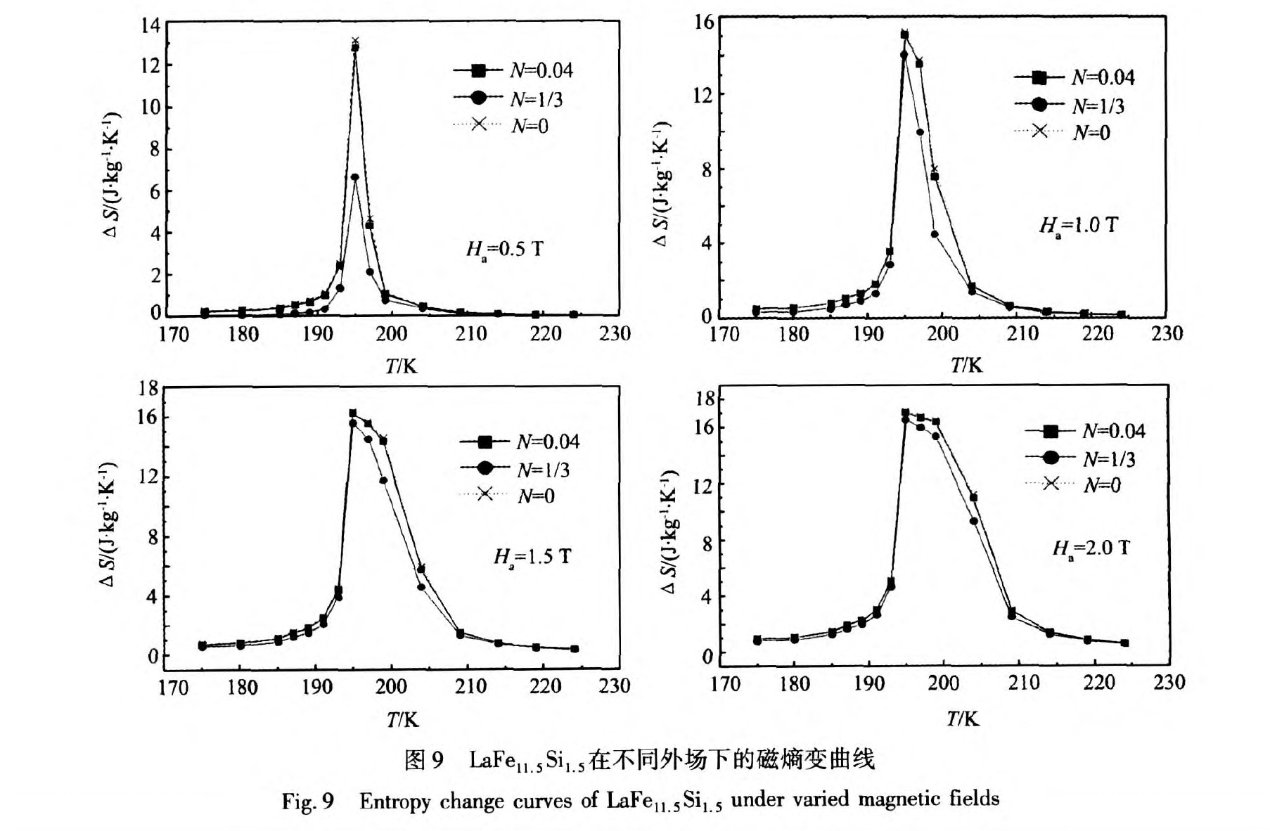 [8] Dong Q Y,Zhang HW,Shen J L,Sun J R,Shen B G.Field dependence of the magnetic entropy change in typical materials with a second-order phase transition[J].J.Magn.Magn.Ma-ter.,2007,319:56.