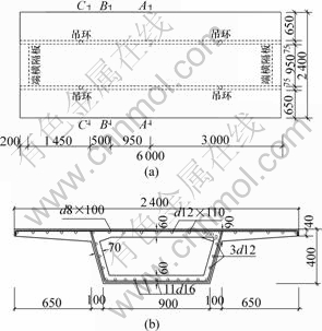 图1 模型箱梁截面尺寸及配筋(单位:mm)