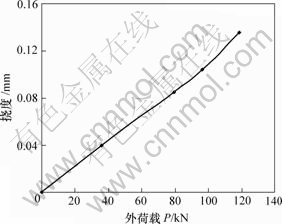 从图2可以看出:连续梁在集中荷载作用处的挠度与荷载基本呈正比,说明连续梁大致处于线弹性工作状态。