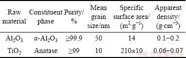 Commercial nanosized particles of α-Al2O3 with the mean diameter of 50 nm and anatase TiO2 with the mean diameter of 10 nm were used as the starting powders, and the performance parameters of them are shown in Table 1. It is well known that individual nanoparticles cannot be plasma sprayed because of their low mass and inability to be carried in a moving gas stream and deposition on a substrate [13]. So the most important thing using nanoparticles as raw material to generate the nanostructured coatings is to reconstitute individual nanoparticles into sprayable agglomerates, which are large enough for plasma spray deposition. The process of reconstitution consisted of spray drying the slurry that contains nanoparticles in the mass ratio of Al2O3- 13%TiO2, and sintering at high temperature (700-1200 °C).