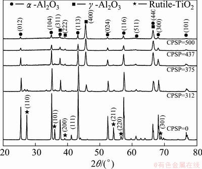 Fig. 4 XRD patterns of nanostructured Al2O3-13%TiO2 coatings sprayed with different CPSP