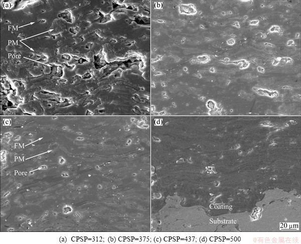 Because the heat input applied to nanopowders increases with increasing CPSP, which is accompanied with higher probability for spray nanopowders to be melted inside the plasma flame, the morphology and microstructure transformation of the coatings can reveal the melting state during plasma spraying at different CPSP, which accords with the phase evolution rule.