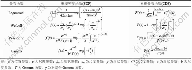 表1 4种理论母体分布函数的概率密度函数和累积分布函数