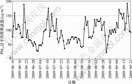 图1 采样期间PM10日平均质量浓度(2009-06~2009-09)
