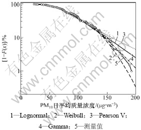 (4) 根据双参数指数分布,PM10超出国家空气质量日平均质量浓度二级标准的发生频率为8.5%。长沙市PM10质量浓度达标所需的污染源降低量为35.8%。