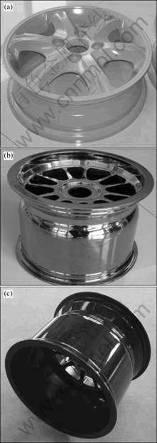 Fig.6 AZ80+ Mg alloy wheels extruded: (a) (14×6) J; (b) (13×10) J; (c) (13×8) J