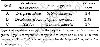 In this work, vegetation was divided into the following three categories according to height, leaf density and effects on pedestrian. Typical vegetation and final leaf area index for each kind of vegetation are listed in Table 1 [20-21].