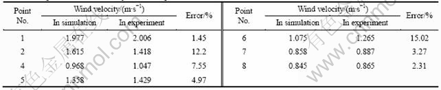 Table 2 Comparison of wind velocity between experiment and simulation