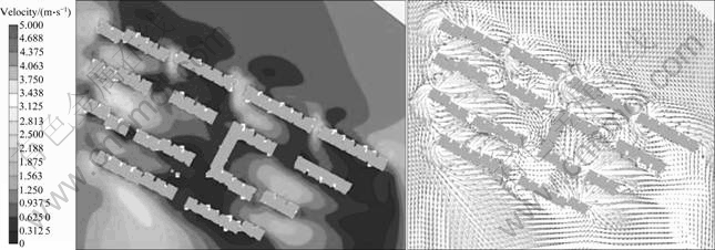 According to experimental data, the condition when coming wind velocity reached 7 m/s was selected for further simulation in order to study potentials for vegetation optimization. The simulation results are shown in Fig. 9.