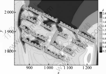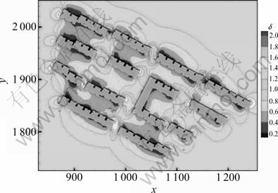Fig. 8 Distribution of δ in simulation with vegetation