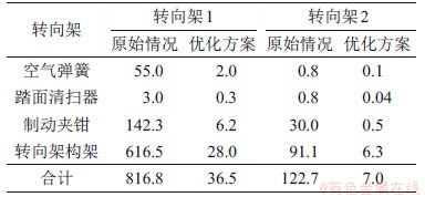 Table 1 Comparison of mass of ice accreting on components of bogies积冰质量/g