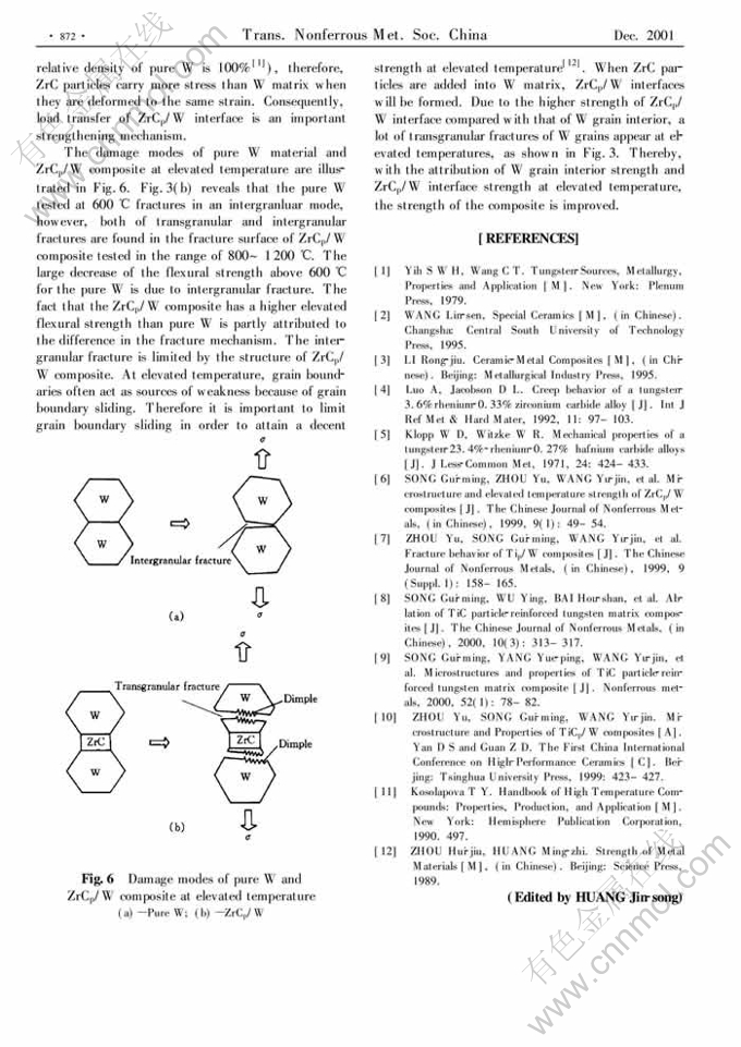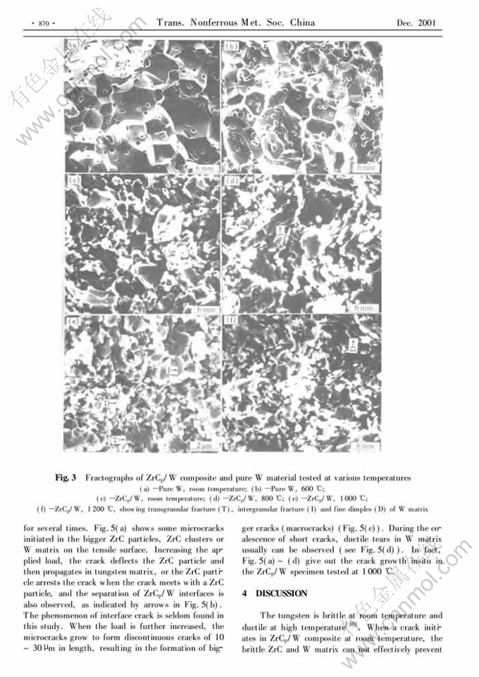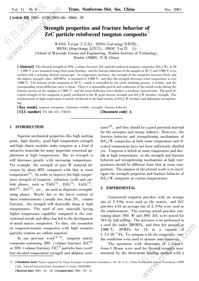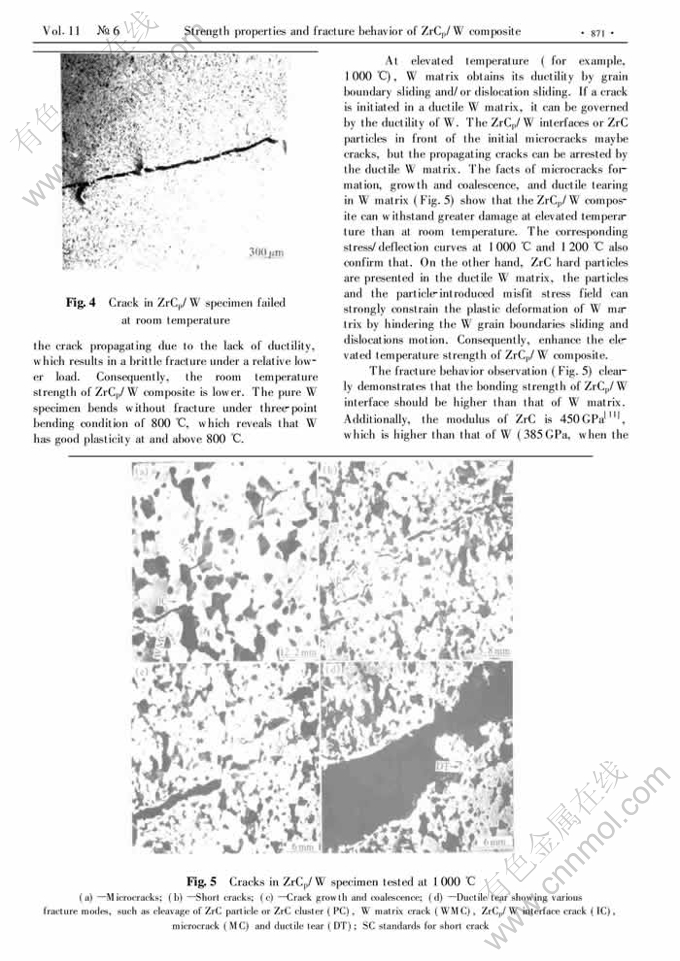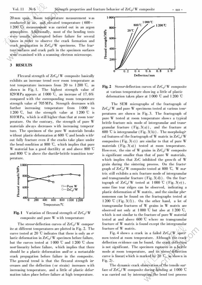 Key words:tungsten composite; zirconium carbide; strength; fracture behavior