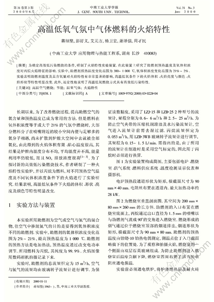 关键词:高温空气燃烧;节能;温室气体;火焰特性