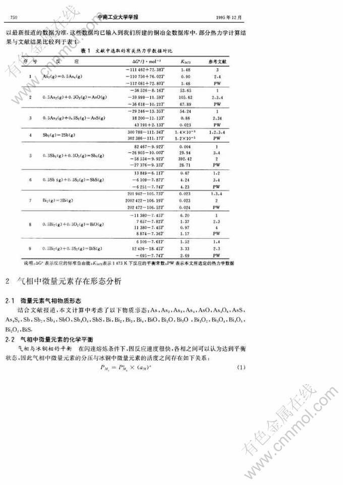 关键词:微量组分; 热力计算; 炼铜/闪速熔炼