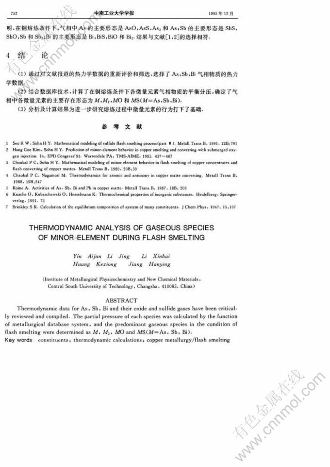 Key words:constituents; thermodynamic calculations; copper metallurgy/flash smelting