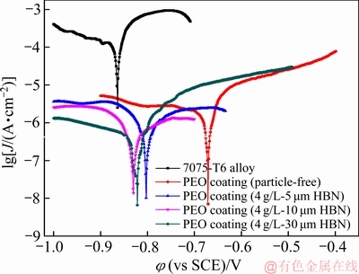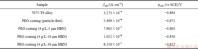图10 不同尺寸HBN颗粒复合的PEO膜(氧化40 min)的Tafel极化曲线