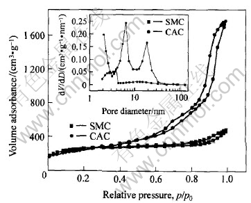 Fig.1 Nitrogen adsorption/desorption isotherms and pore size distributions of SMC and CAC