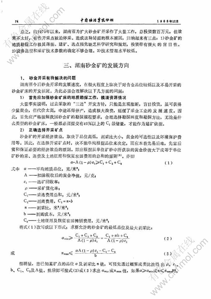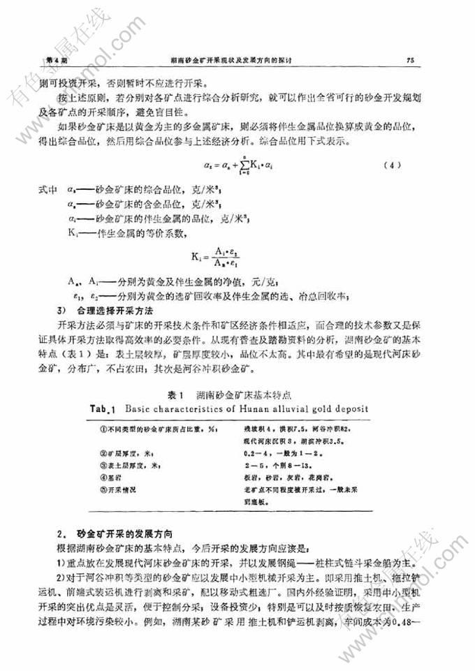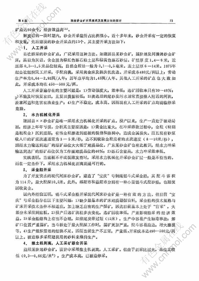 湖南砂金矿开采现状及发展方向的探讨