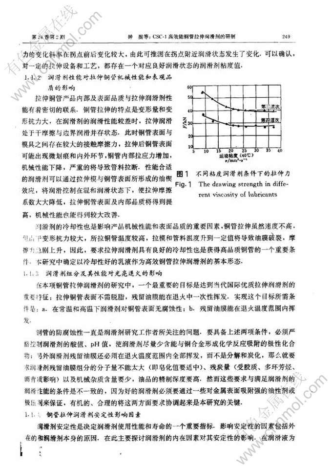 关键词:铜管拉伸润滑剂; 光亮退火性; 润滑性