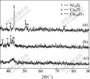 Fig.2 XRD patterns of cast as-cast and annealed samples: (a) Annealed at 873 K for 12 min; (b) Annealed at 738K for 1 min; (c) As-cast