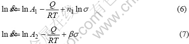 当应变速率为常数时,假定一定温度范围内Q值保持不变,把式(4)代入式(5),再对其两边取自然对数可以得到: