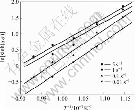 将不同变形温度下Cu-2.0Ni-0.5Si-0.03P合金变形时的峰值流变应力和应变速率值代入式(9),以
